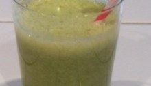 A green smoothie for beginners who want to “build up” to more robust greens. Includes citrus, romaine lettuce and cucumber.