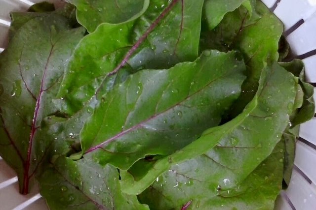 Wash and dry spinach leaves. Or, if your beet greens are fairly young, small, and in good shape, remove the leafy tops from beets. (If the greens are large and leathery, it is better to steam or saute them like chard or kale.) Wash and dry the leaves. Remove stems, then tear leaves into small, bite-sized pieces the way you would prepare lettuce for a salad. Whether using beet greens or spinach, place the clean, torn greens into salad bowl.